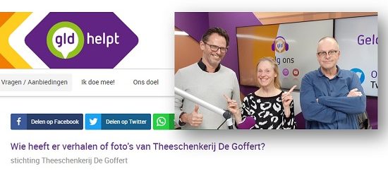 Vandaag waren Paul en Pim te gast bij het onvolprezen programma Gelderland Helpt. Onze hulpvraag: wie heeft er verhalen of foto’s van de vroegere Theeschenkerij in het Goffertpark? Zo kunnen we de historie optekenen in een boek dat we willen maken ter gelegenheid van de heropening.