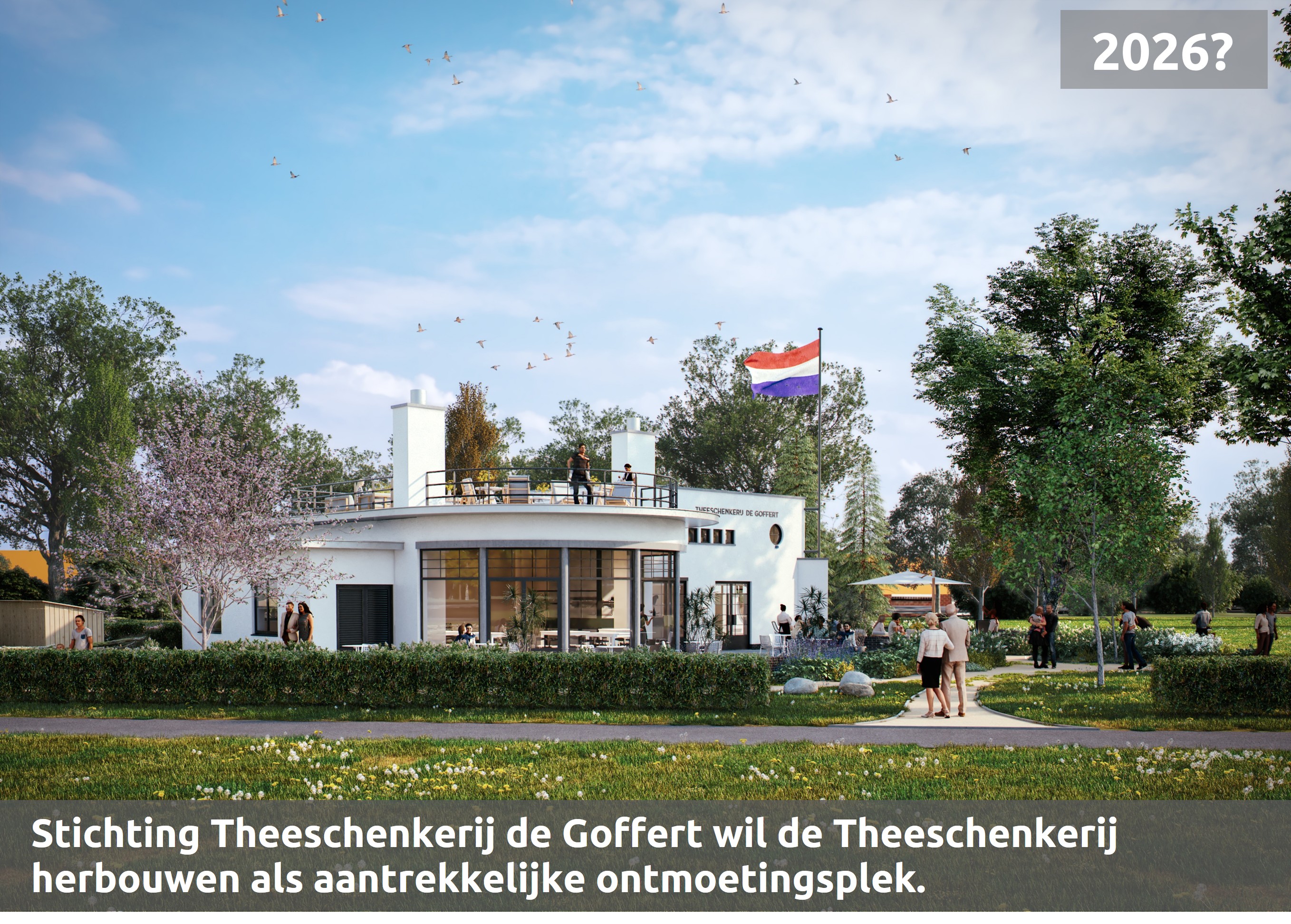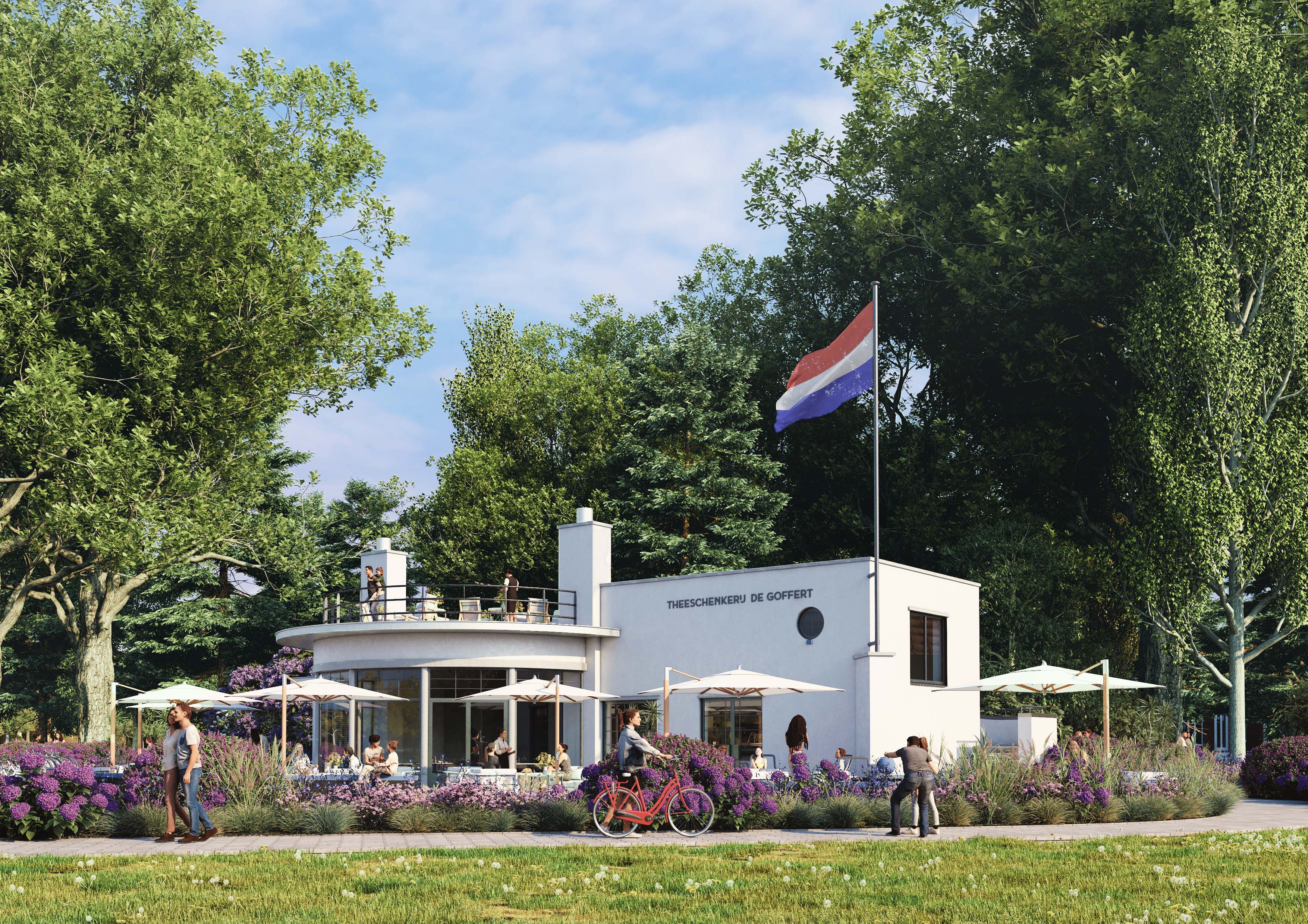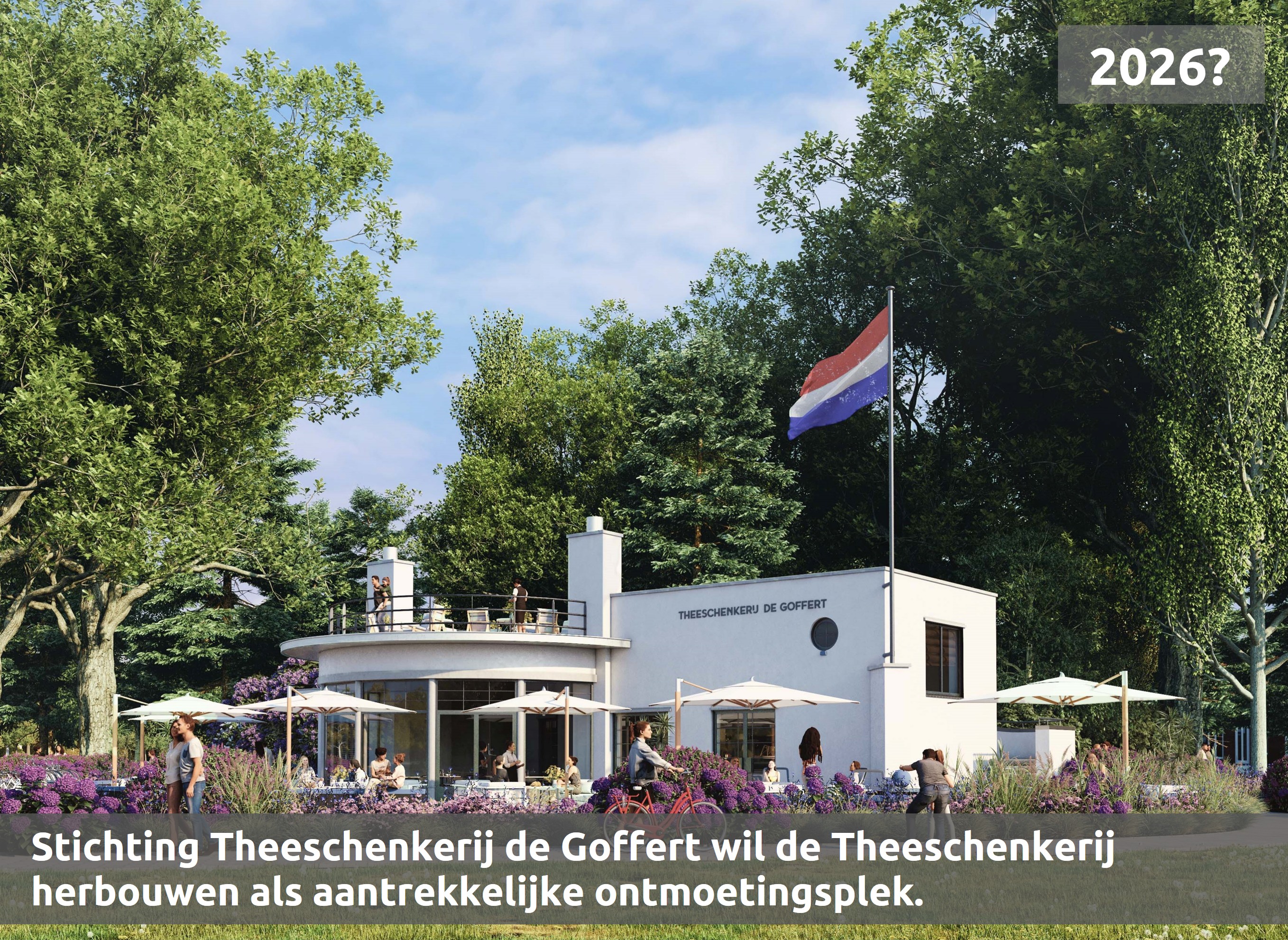 Stichting Theeschenkerij de Goffert heeft als doel het herbouwen van dit architectonisch erfgoed. Tegelijkertijd willen wij voorzien in een aantrekkelijke horecavoorziening met een maatschappelijke functie voor parkbezoekers en buurtbewoners.