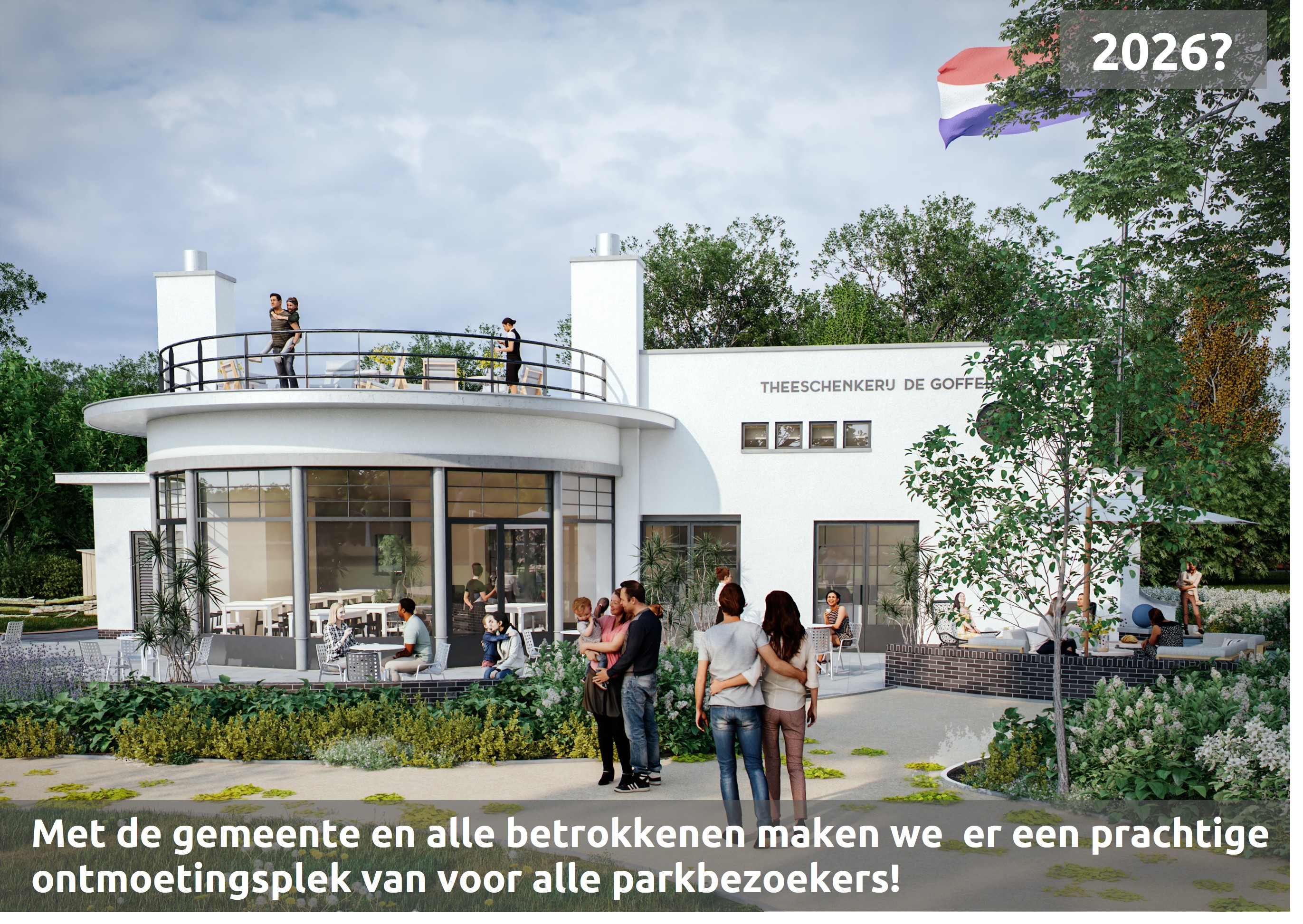 Wij zijn dit hele avontuur ruim 12 jaar geleden begonnen, met de inzet van vele vrijwilligers, op basis van duizenden steunbetuigingen en enthousiaste reacties, omdat we een theeschenkerij met maatschappelijke functie als waardevolle aanwinst zien voor het volkspark de Goffert en voor alle Nijmegenaren. Een lang traject van plannen maken, fondsen vinden en een vergunningaanvraag volgde. De bouwfase komt nu eindelijk in zicht.